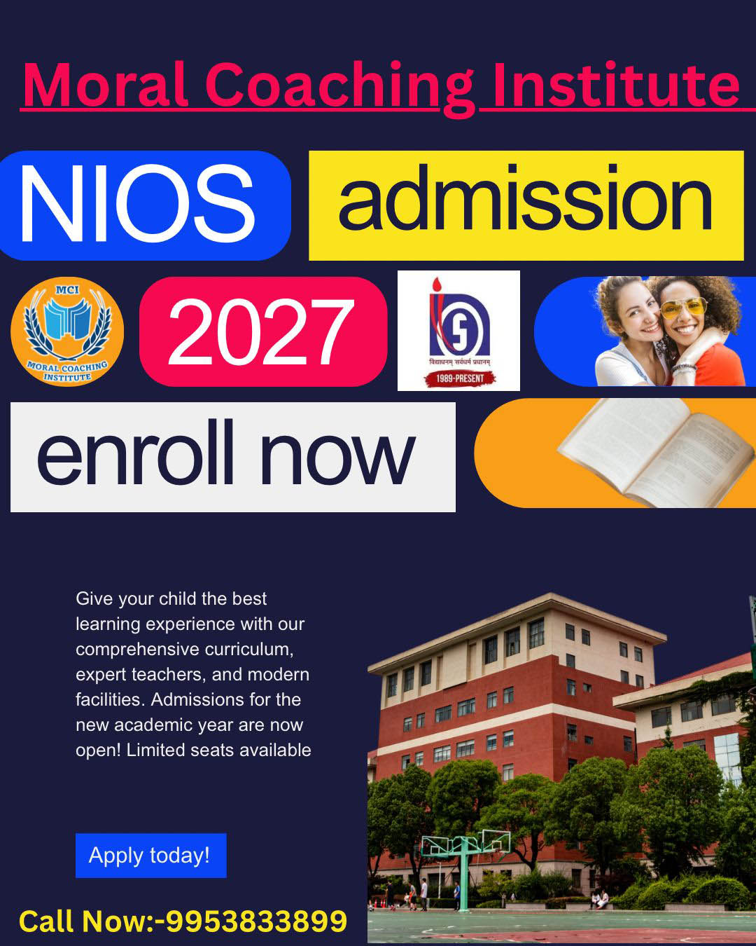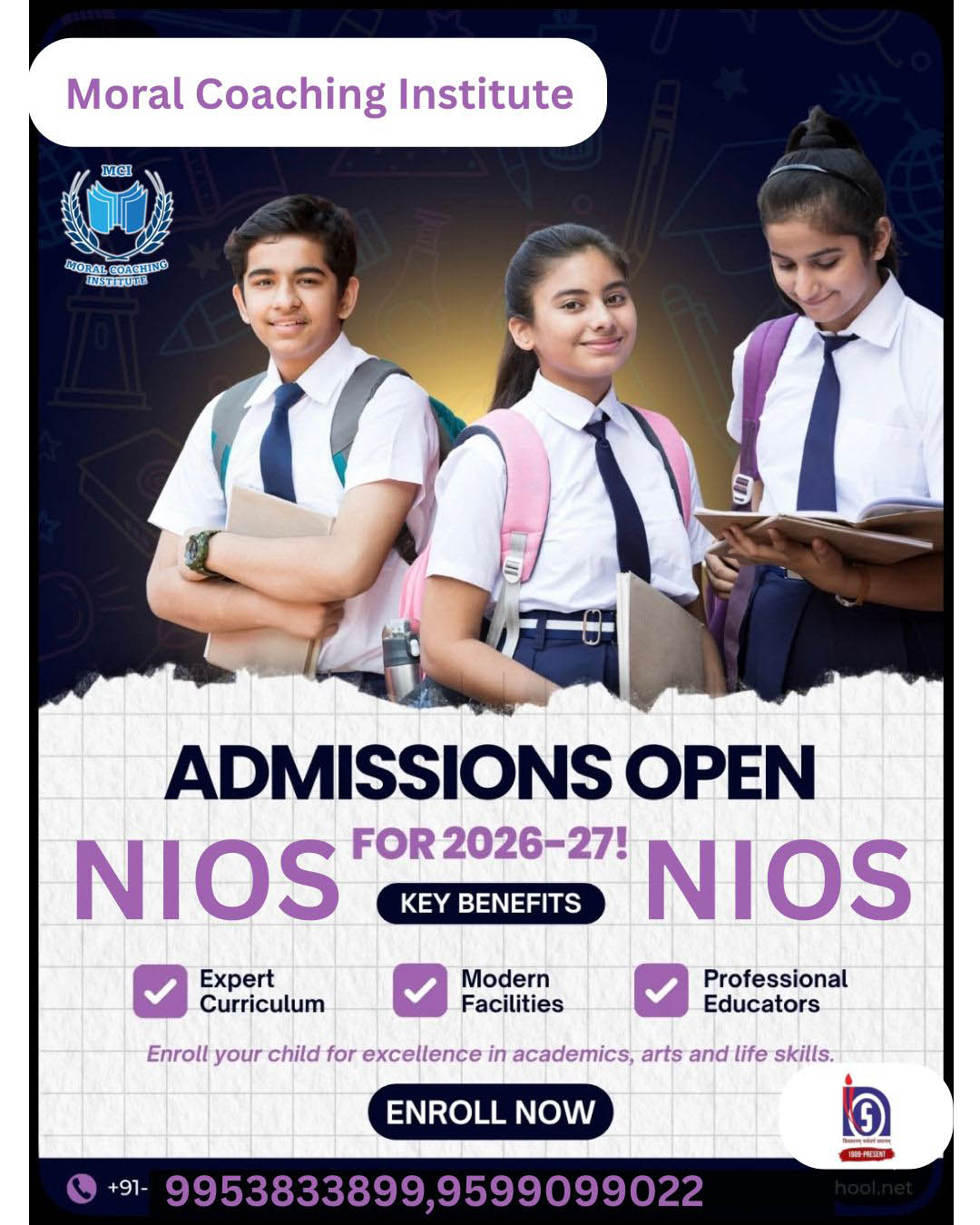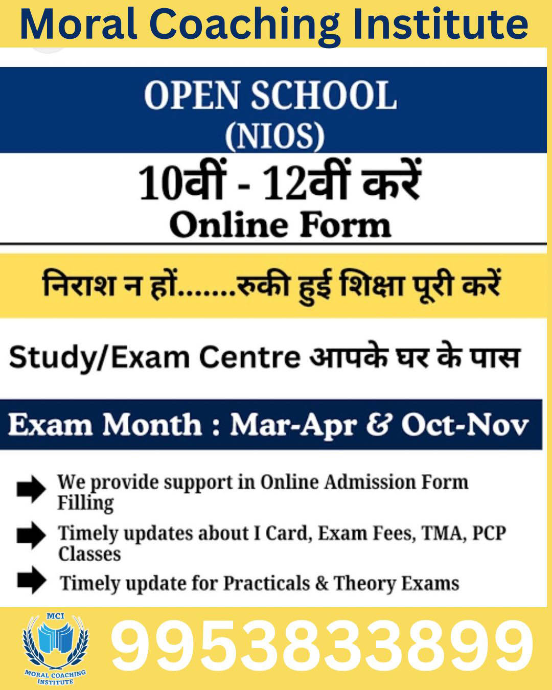 Tuition centre for NIOS Open school and CBSE regular or CBSE patrachar/CBSE correspondance admission both 10th and 12th as regular mode ar available as MORAL COACHING INSTITUTE ROHINI. Best coaching for NIOS Open students and sure.